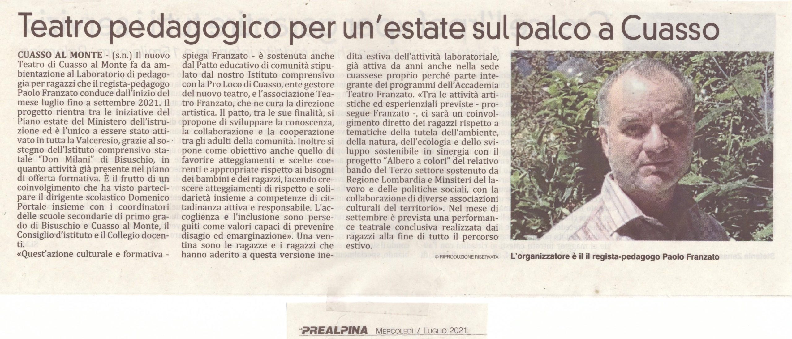 - 30 giugno 2021 – Sempione News. Paolo Franzato conduce i laboratori estivi al Liceo Ferraris e al Nuovo Teatro per saperne di più …