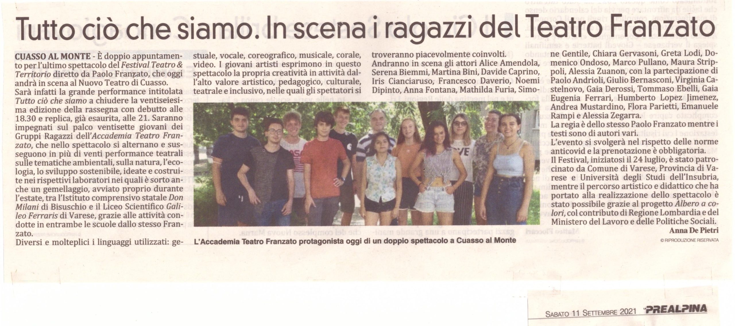 - 8 settembre 2021 – “Tutto ciò che siamo” in scena al teatro di Cuasso al Monte: sul palco 27 ragazzi e ragazze per saperne di più …